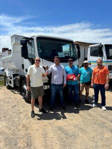 A frota de veículos de Balneário Arroio do Silva continua a ser modernizada, e, nesta semana, a secretaria de Obras recebeu um reforço significativo: um caminhão 0km. O veículo, adquirido pela Administração Municipal, foi recebido oficialmente em uma cerimônia que contou com a presença do prefeito Evandro Scaini (PP), do secretário de obras Dione Mota e do diretor de obras Eduardo da Silva.